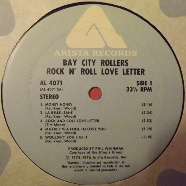 Vinyl, LP1, Rock N' Roll Love Letter, Bay City Rollers, 1976, US