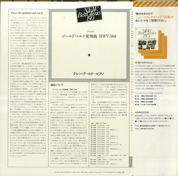 Vinyl, LP1, The Goldberg Variations, Johann Sebastian Bach, Glenn Gould, 1978, Japan