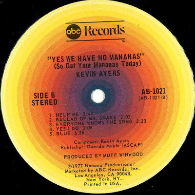 Vinyl, LP1, Yes We Have No Mañanas, So Get Your Mañanas Today, Kevin Ayers, 1977, US
