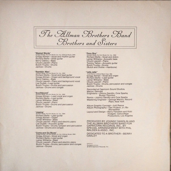Vinyl, LP1, Brothers And Sisters, Allman Brothers Band, The, 1973, United States, United States, US